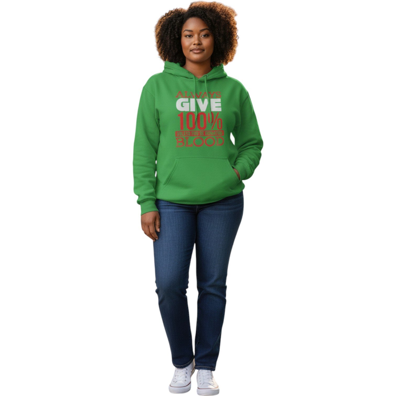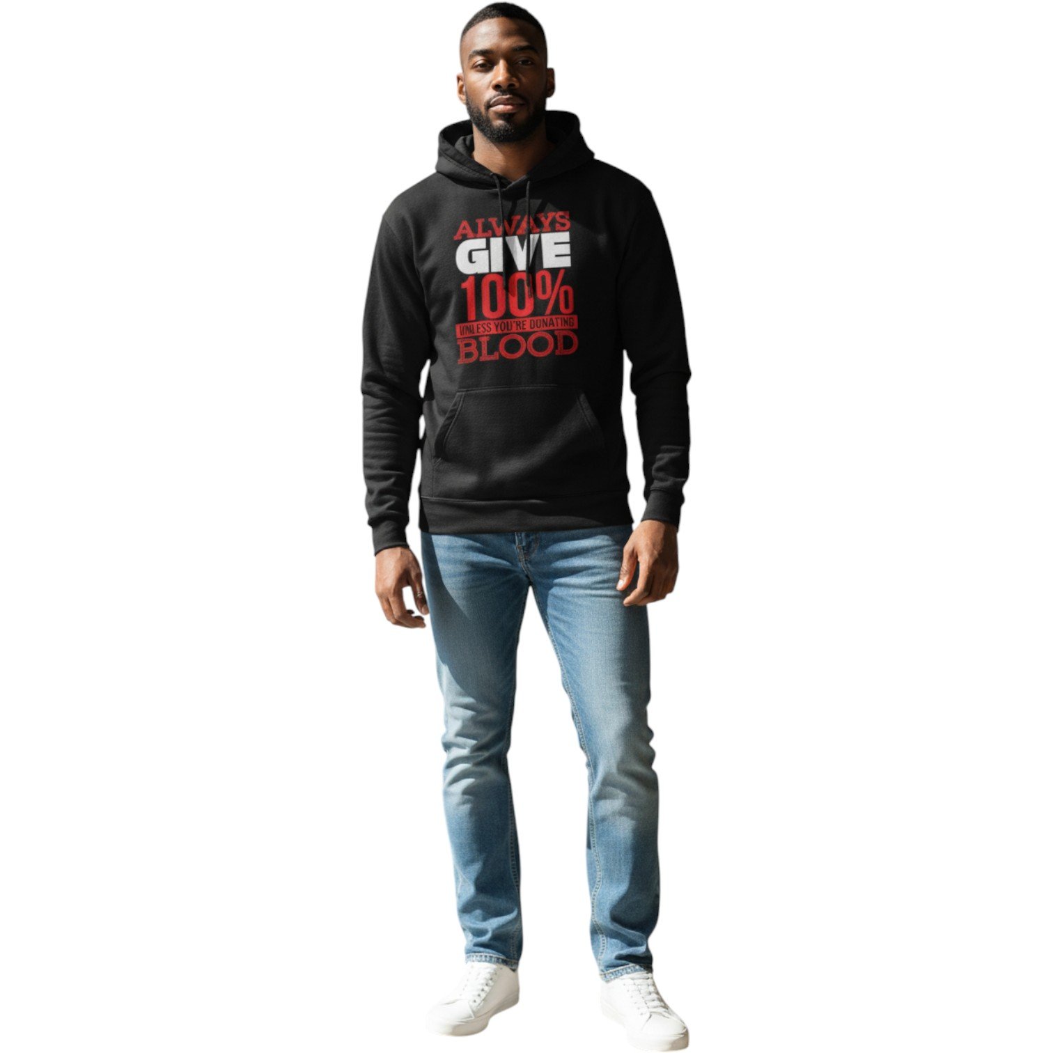 Make a bold statement with our Always Give 100% Motivation Hoodie, a perfect blend of humor, inspiration, and everyday comfort. Featuring the eye-catching phrase “Always Give 100% Unless You’re Donating Blood,” this unisex pullover hoodie is designed for those who work hard, laugh harder, and don’t take life too seriously.