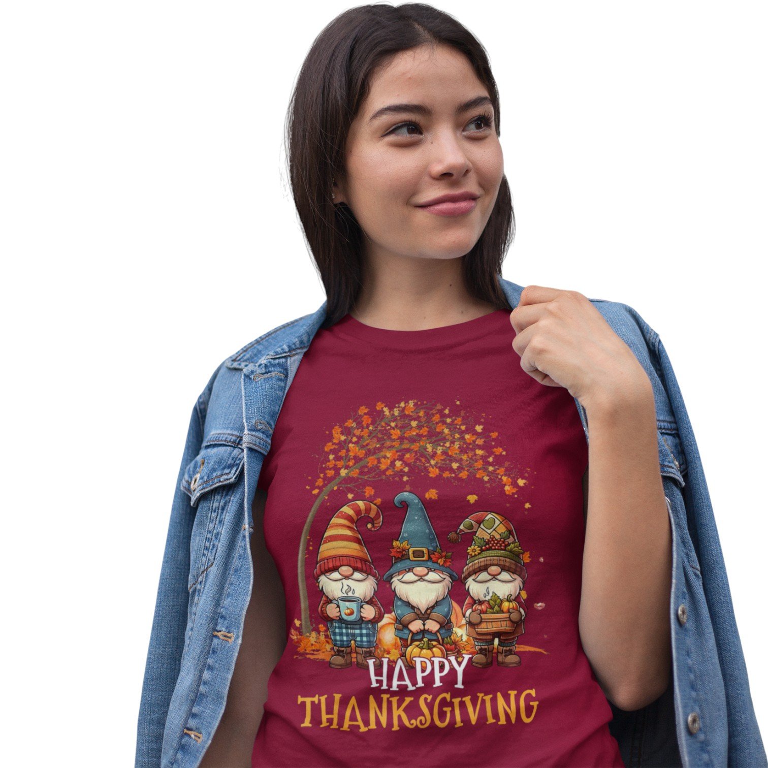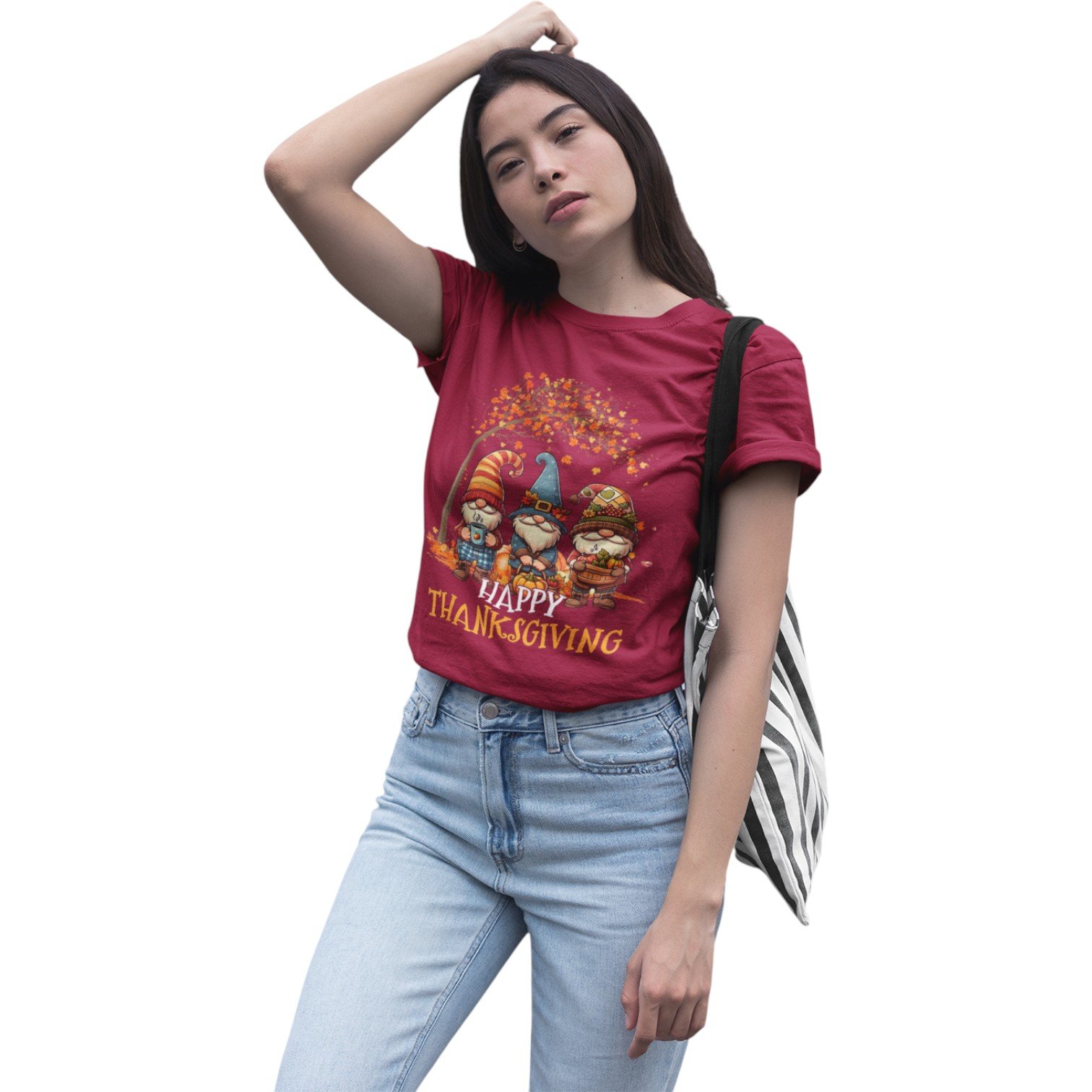 Capture the thanksgiving spirit with our “Happy Thanksgiving Gnomes Tee”, a charming seasonal design exclusively from FabYou Clothing. Featuring whimsical gnome characters nestled among pumpkins and autumn leaves, this tee brings a playful and festive touch to your fall wardrobe.