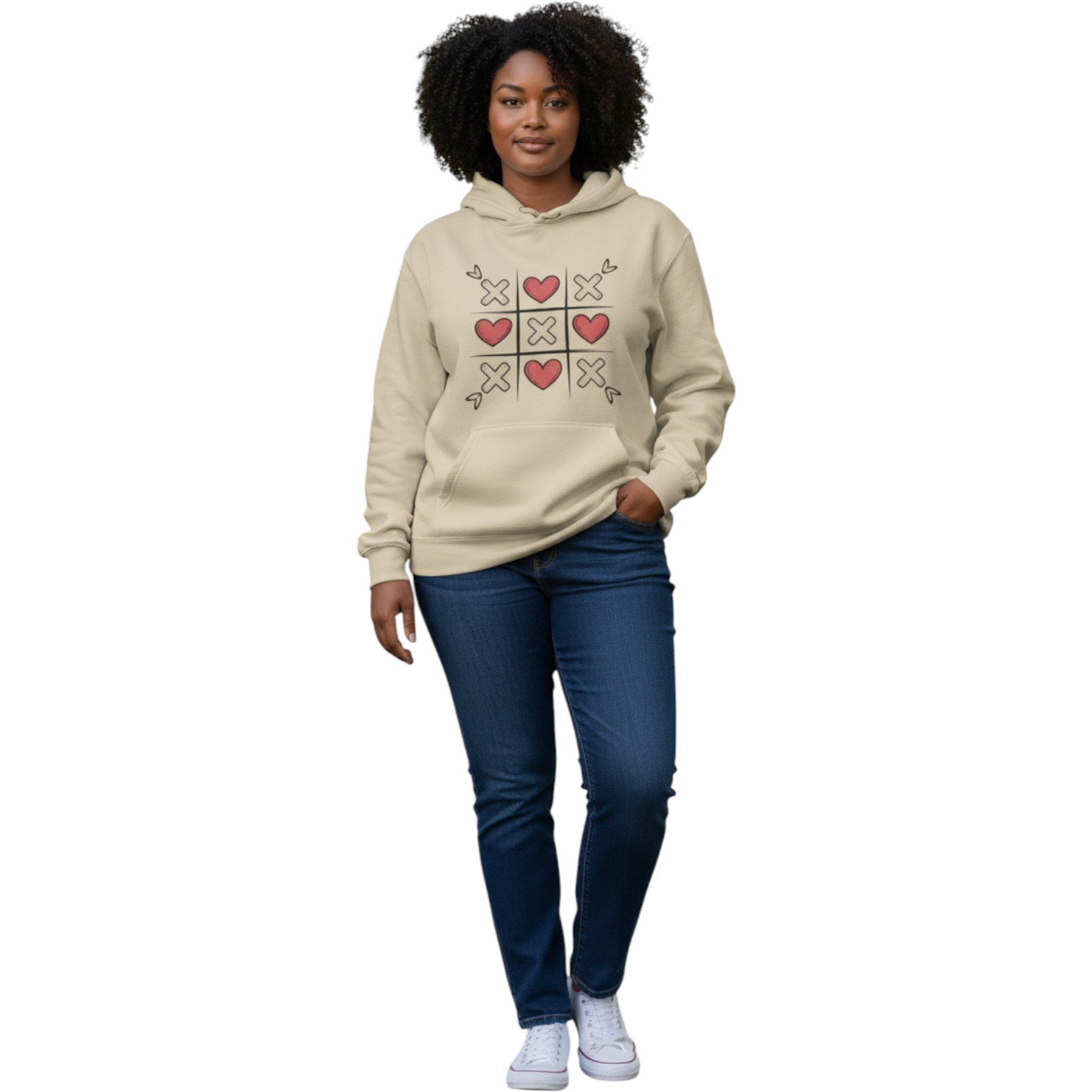 Playfully romantic and effortlessly cozy, the Love Wins Tic-Tac-Toe Hoodie puts a fun Valentine’s twist on a classic game. Featuring a heart-and-X tic-tac-toe design, this hoodie symbolizes connection, affection, and love always winning.